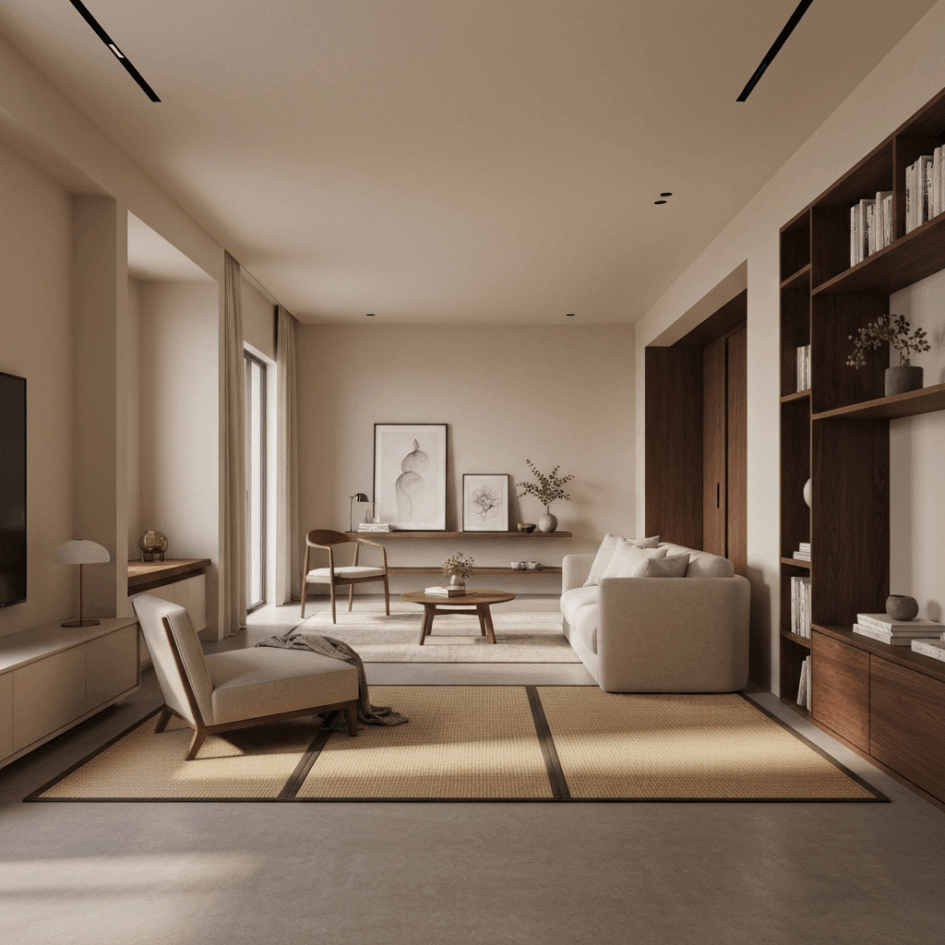 Het typische Japandi-palet bestaat uit neutrale, aardse tinten: zacht wit, beige, grijs en lichte houttinten. Om dit te verfijnen, introduceer je diepere, rijkere neutralen. Denk aan een warm greige, een diep charcoal grijs, of een vergrijsde olijfgroen. Deze kleuren geven direct meer diepte en een luxueuzere uitstraling zonder de rust te verstoren. Gebruik ze voor een accentmuur, een groot vloerkleed of een statement meubelstuk.