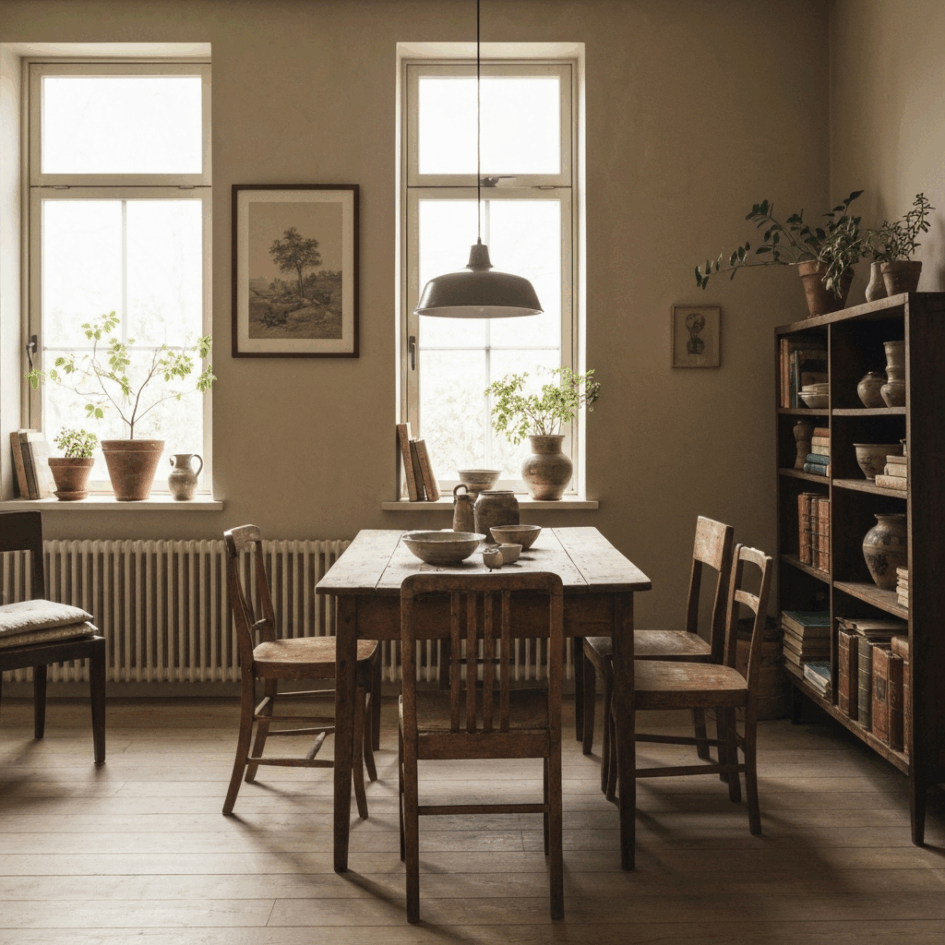 Voorbeelden: Een onbewerkt houten eettafelblad, een bank bekleed met robuust linnen, vazen van ongeglazuurd aardewerk, of een vloerkleed van natuurlijke wol. Vermijd glanzende, synthetische materialen die er te perfect uitzien.